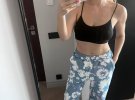 Останнім часом зірка часто полюбляє робити селфі перед дзеркалом. У Telegram артистка поділилася новими світлинами, де постала у повсякденному образі: без макіяжу, у чорному топі, біло-блакитних штанях та пухнастих капцях. Також артистка таким чином похизувалася пласким животом.