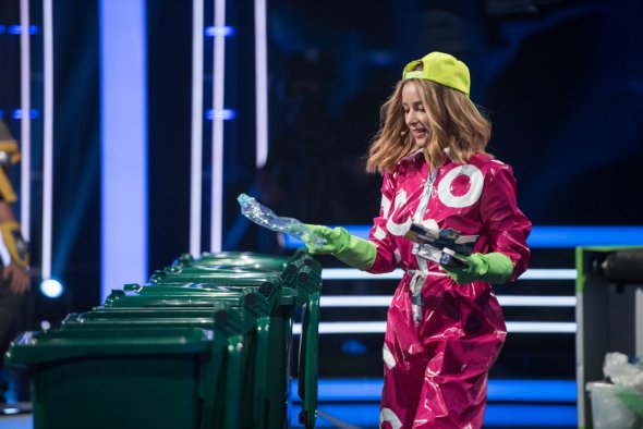 Під час шоу артистка показала, як розбирається у маркуванні на відходах та сортує сміття.