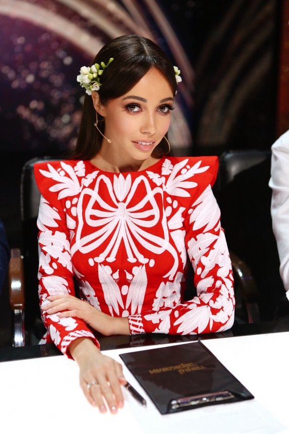 У цей вечір на сцену Катерина Кухар вийшла в стильному платті від українського дизайнера Юлії Магдич.