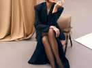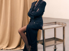 Образ доповнила жакетом в тон, прозорими колготками, туфлями на підборах і масивними прикрасами.