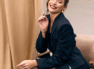 У своєму Instagram зірка опублікувала студійні кадри, на яких позувала в смугастій спідниці з величезним розрізом на стегні.