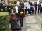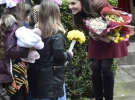 Герцогиня з щирим інтересом розмовляла з дітьми і дорослими. Молодшим учасникам зустрічі вона розповіла про королівських вихованців: кокер-спанієля і хом'як. А коли стала залишати центр, дві дівчинки подарували їй квіти.