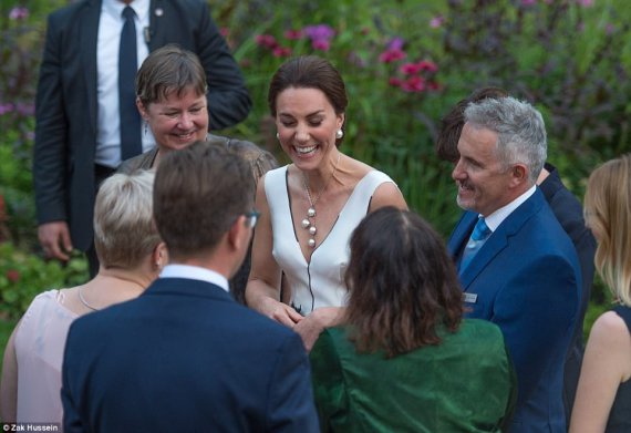 В цей же день Кетрін і Вільям стали гостями вечірки, організованої британським послом в Польщі з нагоди їхнього приїзду. Для появи на світському заході герцогиня обрала сукню польського бренду Gosia Baczynska. До слова, творець наряду була присутня на прийомі і змогла оцінити своє творіння на високій гості.