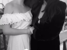 Перед камерою знаменитість постала в чорній мереживній сукні та жакеті в тон. Дуглас показався у синьому піджаку і класичних штанах, а Керіс позувала в білій сукні з рюшами.