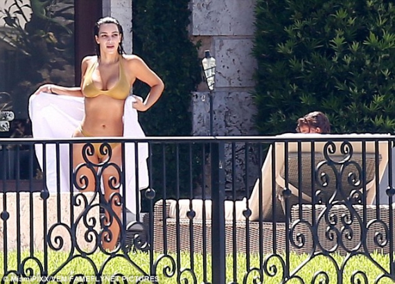 Знаменитість підловили у крихітному бікіні біля басейну у Маямі. Компанію Кім склали її діти та друзі.