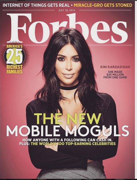 Зірка реаліті-шоу Кім Кардаш'ян знялася для обкладинки Forbes. А допомогла їй в цьому мобільна гра Kim Kardashian: Hollywood, яка принесла дружині Каньє Веста за попередніми підрахунками 45 мільйонів доларів. Журнал впевнений, що Кім поповнить ряди щасливців, які заробили 200 мільйонів на digital-додатках.