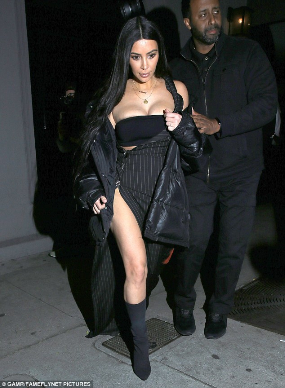 Красуня прийшла у ресторан у відвертому вбранні. Зірка приміряла дуже вузький топ та спідницю з високим розрізом.