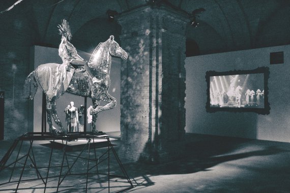 Концертне вбрання від Анни Бублик і дзеркальний кінь Олі Полякової представлений на виставці "IN PROGRESS. Дрес-код України доби Незалежності" в "Мистецькому Арсеналі" поряд з інавгураційною сукнею Першої леді України.
