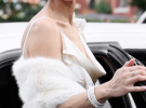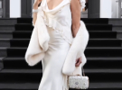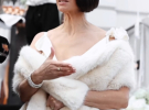 Перед камерами зірка постала в ефектному образі. Одягла білу сукню-комбінацію з воланами й хутряну накидку.