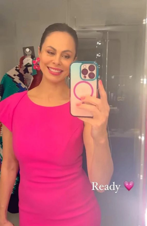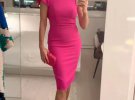 Зірка одягла обтислу рожеву сукню, яка підкреслила її розкішну фігуру. Образ доповнила туфлями, сумкою і прикрасами в тон.