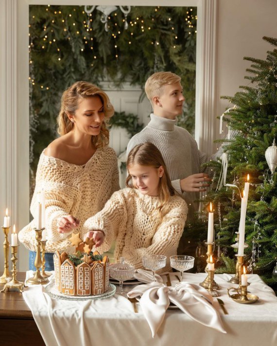 На кадрах, опублікованих в Instagram, вона позувала з сином Робертом та донькою Олівією у фотостудії, яка була прикрашена новорічним декором.