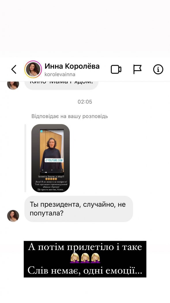 Зокрема, Кошмал назвала Путіна вбивцею та брехуном, а також висловила своє розчарування поведінкою колеги. Після цього Анні у приватні повідомлення написала Корольова.