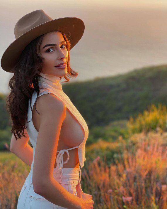 Зірка поділилася кадрами, на яких позує на лоні природи в світлі сонячних променів. Олівія постала у досить відкритому на боках топі, демонструючи груди. Сміливий образ доповнила капелюхом.