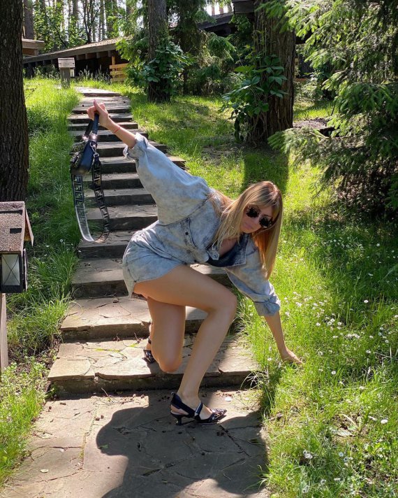 Зірка опублікувала в Instagram світлини, на яких була зафільмована під час падіння зі сходів. При цьому одягнута була в мінісукню, яка підкреслювала довгі ноги та ледь не оголила її пікантні місця під час казусу.