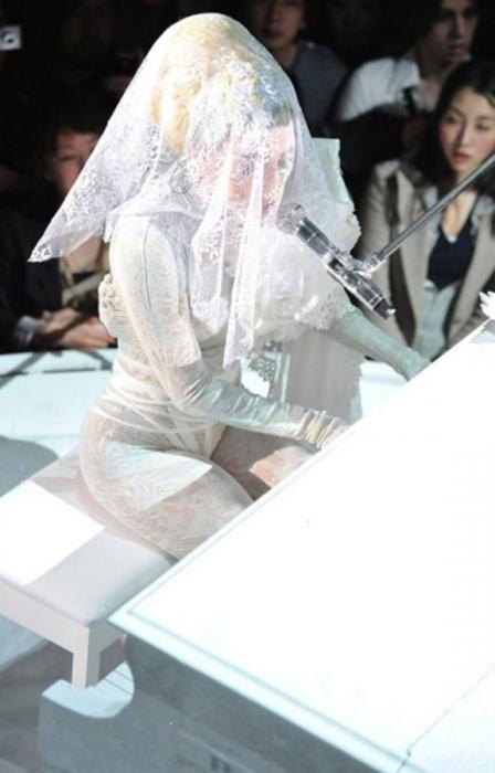 Гага не посоромилася похизуватись своїми формами. Вона була одягнена в костюм, що не приховував майже нічого.
