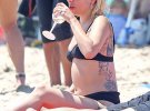 Пара засмагала на пляжі. Гага демонструвала свої численні татуювання, пила вино та позувала Крістіано під час фотосесії.