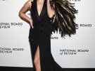 На червоній доріжці знаменитість пройшлася у чорній сукні-смокінгу від Ralph Lauren. Дороге вбрання всипане 23 тис. кристалів. Його доповнила взуттям від Gianvito Rossi. Найбільше фанатів акторки здивував незвичний аксесуар з чорним і золотим пір'ям.