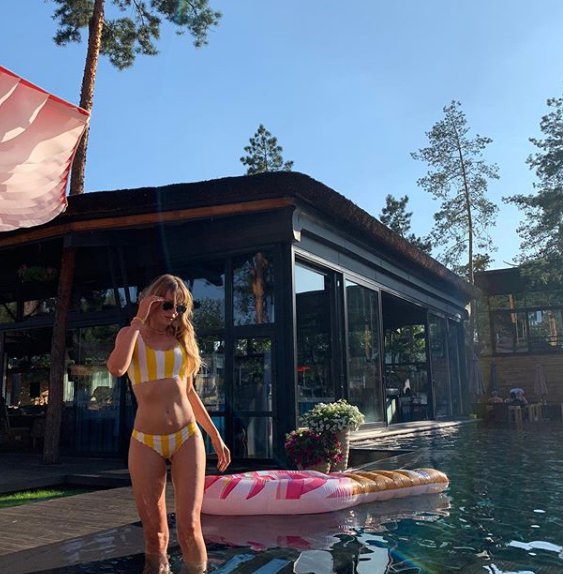 Нікітюк постала у крихітному біло-жовтому бікіні. Волосся зірки розпущене. Образ довершували сонцезахисні окуляри.