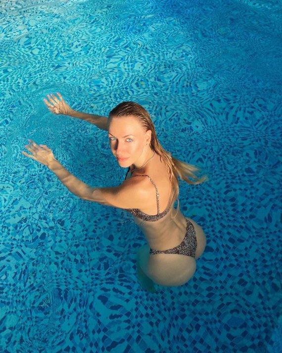 На сторінці в Instagram Леся розмістила серію знімків, де позує в басейні. На Нікітюк – купальник з леопардовим принтом. Ведуча позувала так, що якнайкраще продемонструвала апетитні вигини тіла й сідниці.