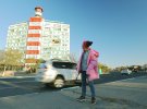 "Тут подумали: "Навіщо будувати маяк, якщо є багатоповерхівка просто на березі моря?". Маяк світить і вказує шлях кораблям та літакам. Кажуть, що можна піднятися на дах і подивитися на місто з висоти пташиного польоту. Але спочатку треба зайти у під`їзд, який більше схожий на якийсь бункер, і знайти касу. Там дізнаєшся дивний факт про Актау. Тут ліфти – платні, адже їх вважають громадським транспортом", - продовжує ведуча.