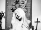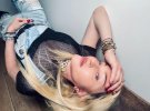 Зірка позувала на ліжку топлес, в сітчастих колготах і туфлях на високих підборах. Сміливий образ доповнили довгі рукавички і кольє.