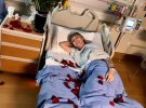 Фотографіями з музикантом Сайрус поділилась в Instagram. На одному зі знімків закохані лежать у лікарняному ліжку притулившись. На іншому - Майлі лежить, оточена пелюстками червоних троянд.