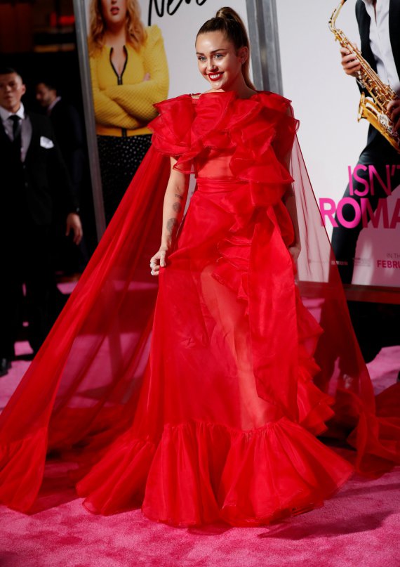Американська співачка 26-річна Майлі Сайрус побувала на прем'єрі нової стрічки "Isn't It Romantic". У ній знявся її чоловік Ліам Гемсворт. На червоній доріжці Сайрус вразила елегантним образом.