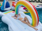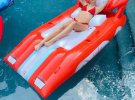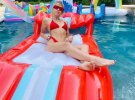 На світлинах Сайрус позувала в басейні на надувному матраці. Для відпочинку Майлі обрала червоне бікіні та сонцезахисні окуляри.