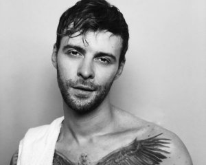 На ньому артист відображений після феєричного концерту в гримерці з рушником на грудях, на яких видно велике татуювання у вигляді створення з людським тілом, орлиним обличчям і широкими довгими крилами.