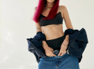 На кадрах, опублікованих в Instagram, зірка позувала в чорній білизні та розстібнутих джинсах.