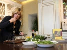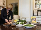 Під час прес-конференції вона приготувала "Салат Гурмана". Робила його з руколи, кінзи та сьомги.