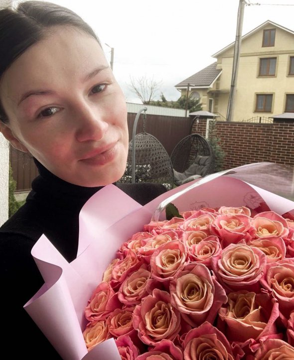 Співачка і багатодітна мама Анастасія Приходько з нагоди свята опублікувала світлину, де вона позує з розкішним букетом рожевих троянд.