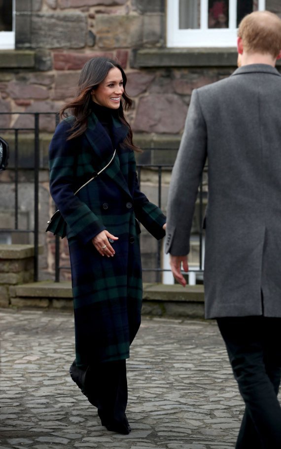 Однією із родзинок Маркл стилісти називають вміння підбирати вдале пальто. Нещодавно вона вразила публіку, одягнувши пальто Burberry у шотландську клітку темно-синього і зеленого кольорів. Це трендові кольори весняного сезону 2018.