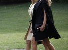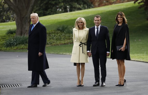 Для прийому в Білому домі 65-річна Брижит вибрала пальто світло-жовтого кольору з чорною обробкою, а також сукню в тон від свого улюбленого бренду Louis Vuitton. А 47-річна місіс Трамп вбралася в чорне - накидку-смокінг від французького будинку Givenchy (вартістю 2790 доларів), сукню від Dolce & Gabbana і туфлі Christian Louboutin.