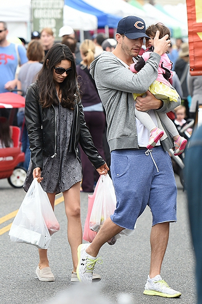 Куніс і Катчер з дочкою були помічені на фермерському ринку в Лос-Анджелесі. Ештон тримав доньку на руках, а Міла спілкувалась з подругою.