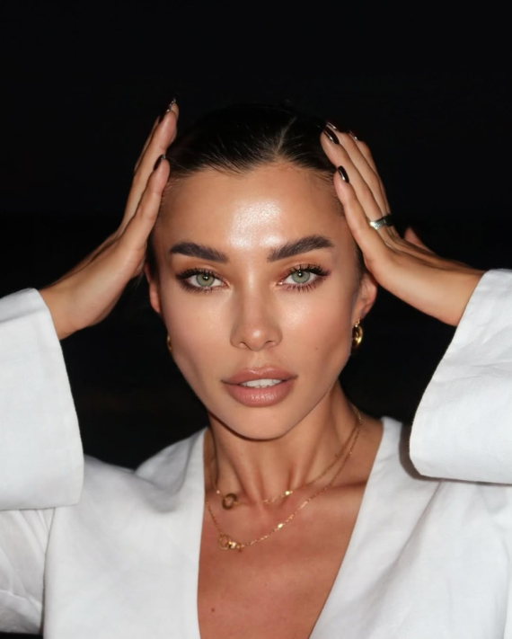 Образ доповнила зібраним волоссям, ніжним макіяжем і вишуканими прикрасами.