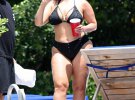 Зірка демонструвала розкішні форми у модному бікіні з металевим декором.
