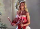 Дівчата, вбрані в костюми "подружок Санти", прикрашають ялинку, запалюють свічки, розкладають подарунки і вітають глядачів з різдвом.