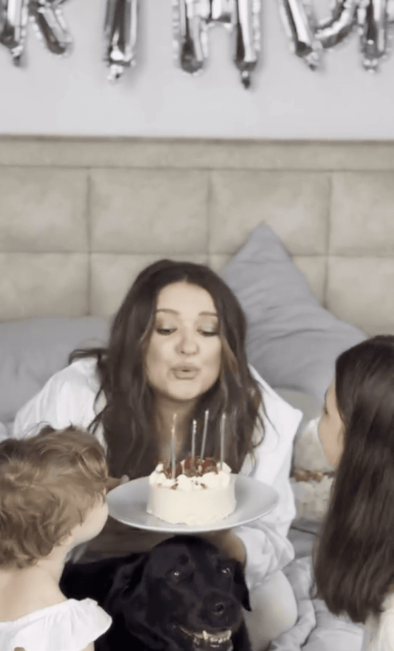У своєму Instagram зірка опублікувала зворушливе відео, на якому задула свічки на торті з доньками та подякувала чоловіку Валентину. Артистка присвятила коханому пісню.