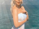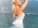 24-річна зірка позувала у кристально чистому озері в білій сукні. Плаття оголило плечі Гросу та пікантно підкреслило пишні груди.