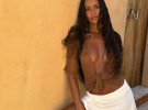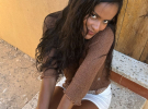 На кадрах, опублікованих в Instagram, модель позувала в ультракороткій спідниці білого кольору й прозорій сорочці, через яку засвітила оголені груди.