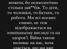 "Я знаю, що таке, коли тобі 22, а ти виглядаєш наче народила мінімум місяць тому. Я знаю, що таке проблеми з жіночими гормонами. І я проти знецінення кожної жінки. Можна виглядати стрункою, коли народила трьох дітей, а можна не знати, що робити з собою, коли ти ще не народжувала, а тіло виглядає дуже набряклим і ти не знаєш, куди подітися", – написала вона.