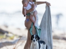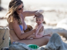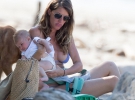 Топ-модель була сфотографована на пляжі Коста-Ріки зі своєю маленькою донькою Вівіан, чоловіком Томом Бреді і старшим сином Бенджаміном. Зоряне сімейство насолоджувалося пляжним відпочинком, а Жізель похизувалась стрункою фігурою в бікіні.
