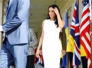 Меган завітала до австралійського зоопарку у білій сукні від місцевої маркиl Karen Gee. Дизайнерка відома вбранням, яке підкреслює форми та перевірене часом. Модель на герцогині має назву 'Blessed'. Доповнила образ дружина принца Гаррі туфлями на підборах від Stuart Weitzman та прикрасами, які носила принцеса Діана.