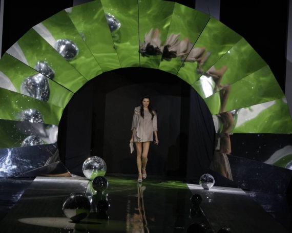 Вона перенесла усіх присутніх на дискотеку 80-х. Подіум прикрасила сріблястими кулями, а моделей одягла у шовкові сукні, топи та накидки.