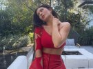 Наступний лук виявився не менш яскравим. Кайлі позувала в помаранчевому топі і такого ж кольору спортивний штанах. Варто відзначити, що цей відтінок моделі справді до лиця.