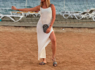 На кадрах, опублікованих в Instagram, артистка позувала в напівпрозорій сукні з розрізом на стегні. Образ доповнила брендовими шльопанцями, маленькою сумкою і природною укладкою.