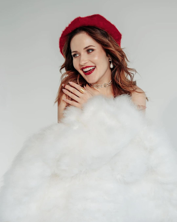 На кадрах, опублікованих в Instagram, зірка кіно позувала в студії. Одягла коротку білу шубу та колготки в тон.