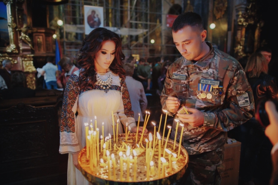 "Я справжній консерватор. Для мене через місяць сказати "так" було подвигом....Я ніколи не мріяла і не хотіла весілля. От моя молодша сестричка, на відміну від мене, все життя марила весіллям, - поділилась Наталка. - Я казала Жені, що згодна на джинси і білу майку, на швидкий розпис, після чого б ми полетіли до Рима. Але Женя мене переконав у протилежному".