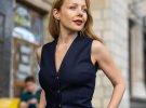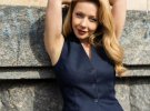 Для фотосесії Тіна обрала синій костюм з брюками та жилеткою від українського бренду, а також чорні туфлі на підборах.